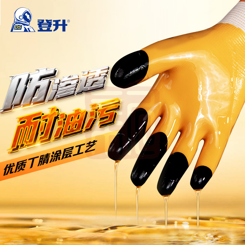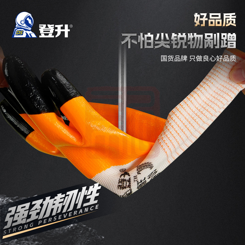 产品名称 登升 #909耐磨王 13针涤纶3/4浸丁腈涂层加强指手套-均码
