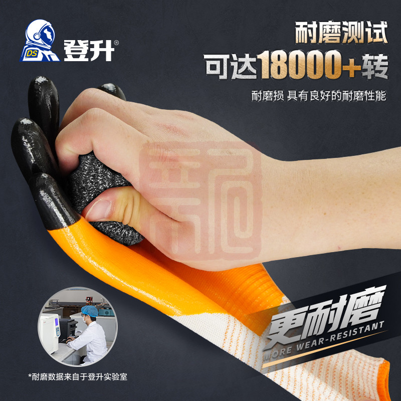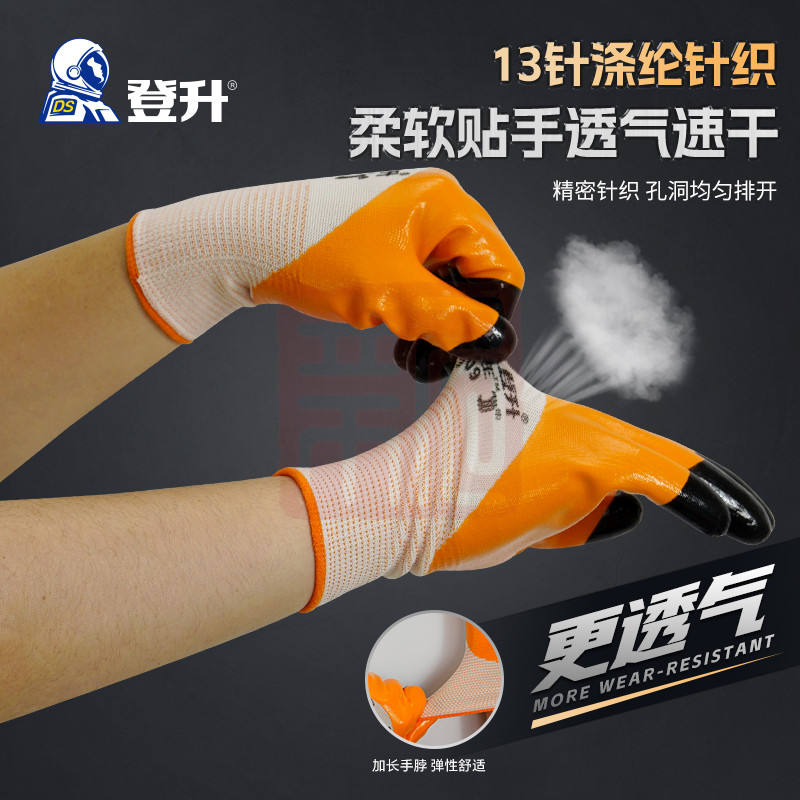 登升 #909耐磨王 13针涤纶3/4浸丁腈涂层加强指手套-均码