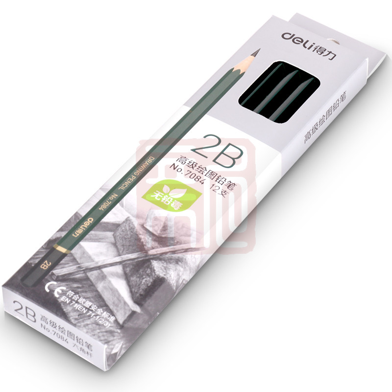 制造商型号:得力 7084 铅笔 2B 12支/盒 (单位盒) 墨绿