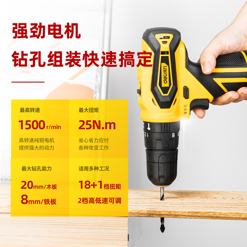 得力工具 锂电钻大容量(黄)